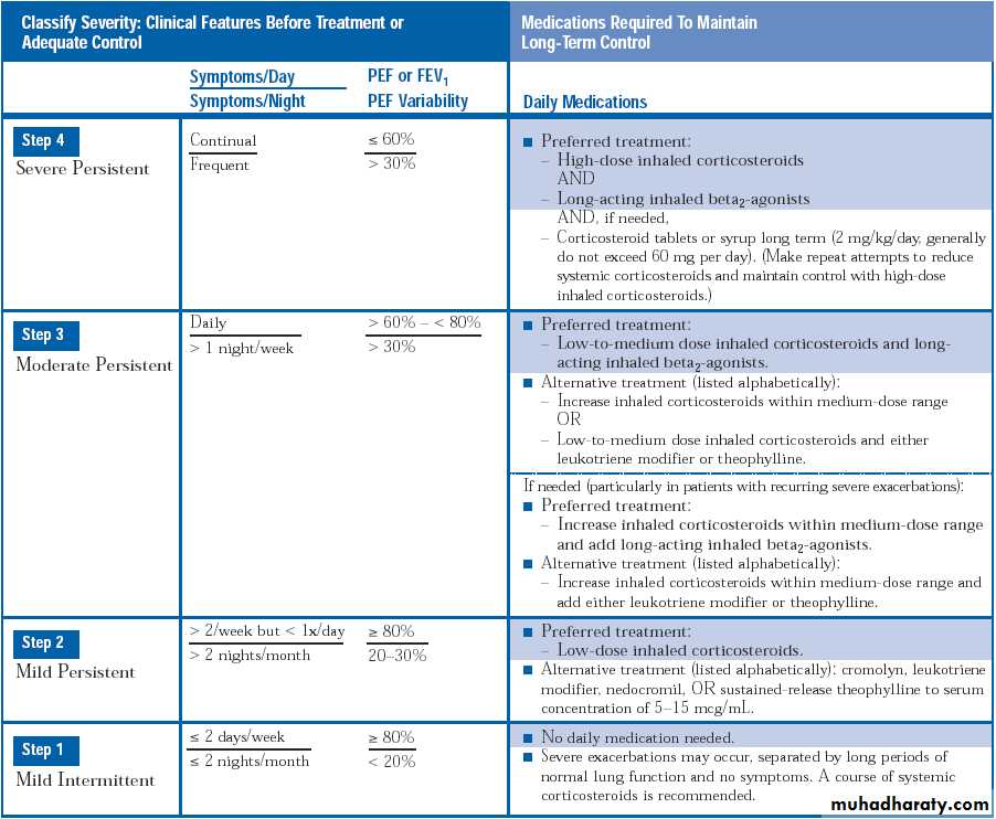 Preferred treatment is low to medium dose inhaled corticosteroid and a long acting inhaled beta 2 agonist