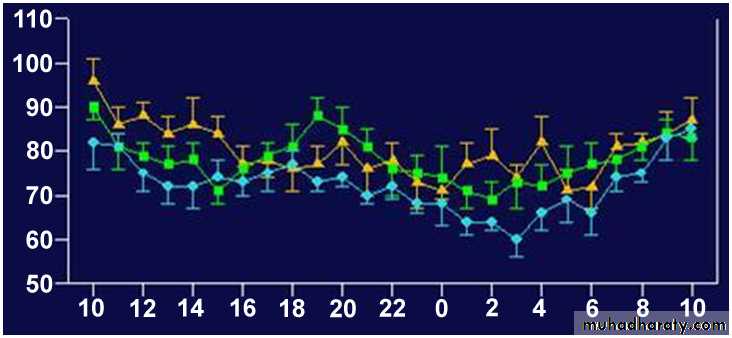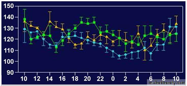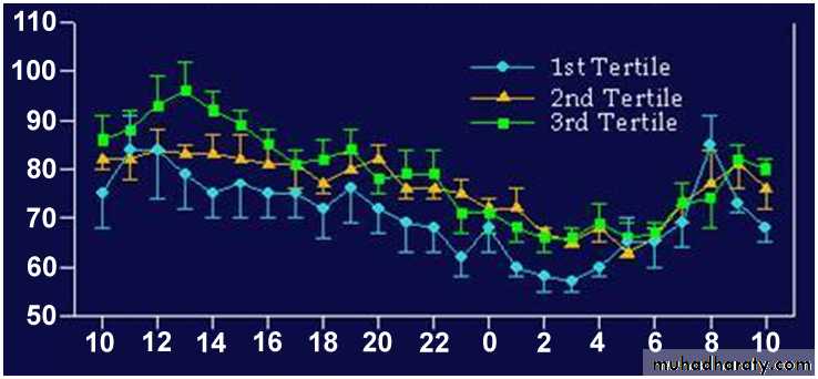Clock time (hours)Intra-abdominal (Visceral) Fat Area Tertiles and 24-hour Ambulatory Blood Pressure and Pulse Rate in Chinese Type 2 Diabetic Patients