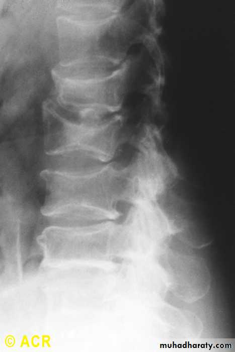Osteopenia, compression fractures: lumbar vertebrae (radiograph)