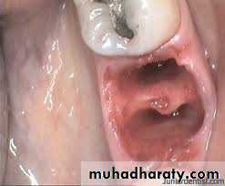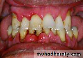 acute (necrotizing) ulcerative gingivitis or trench mouth, acute ulcerative gingivitis with resultant gross tissue loss of the facial region.