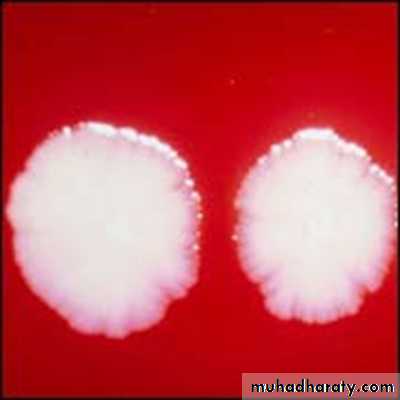 Grows on blood agar as dull, granular colonies with an irregular, rhizoid edge.Biochemical reactions and the acidic end-products of carbohydrate metabolism help identification.