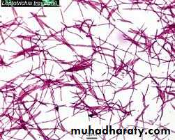 Leptotrichia spp. are oral commensals belong to the genus Fusobacterium.They are Gram-negative, strictly anaerobic, slender, filamentous bacilli, usually with one pointed end.
