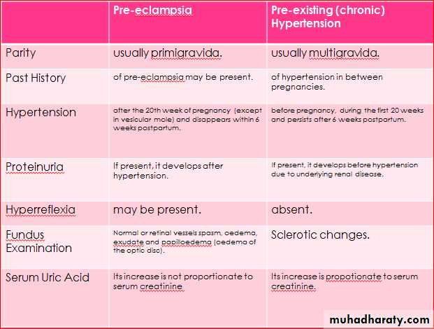 Imminent eclampsia: It is a state in which the patient is about to develop eclampsia. Usually there are: