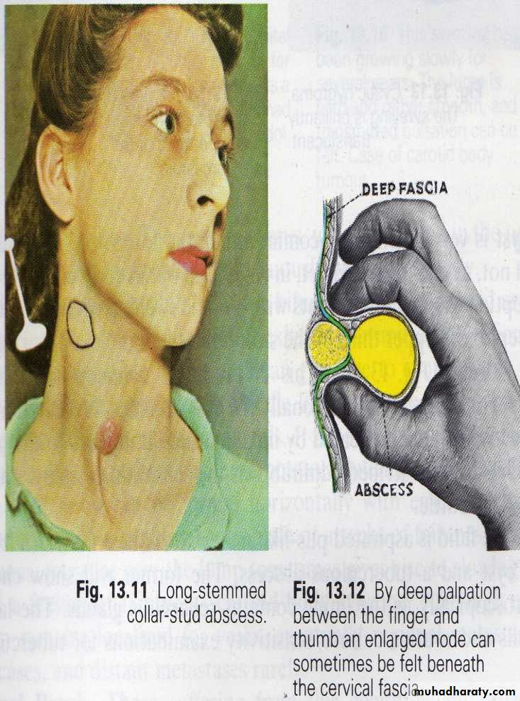 • Fluctuation occur when the abscess burst to the superficial fascia to form collar stud abscess.