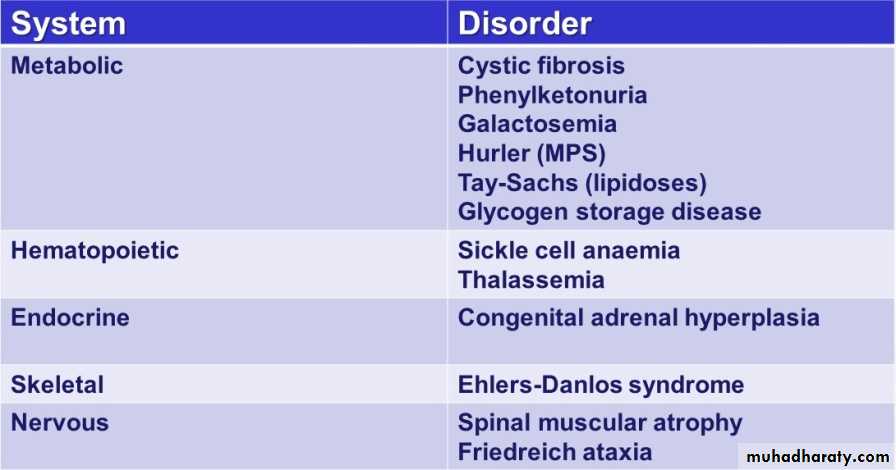 AS a result of newborn screening, e.g.PKU, or family screening, e.g. familial hypercholesterolaemia.