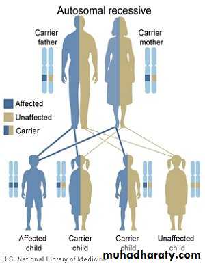 1 in 4 risk of having an affected child for 2 carrier parents.