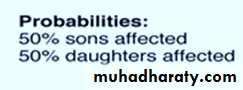 An affected man will have only affected daughters and unaffected sons, and half of the offspring of an affected woman will be affected .