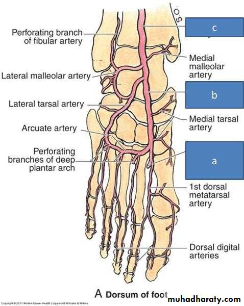 Dorsalis pedis artery Branches:1- Lateral tarsal branch.