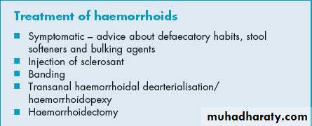 Management Of Haemmorriods-Exclusion of other causes of rectal bleeding, especially colorectal malignancy, is the first priority.