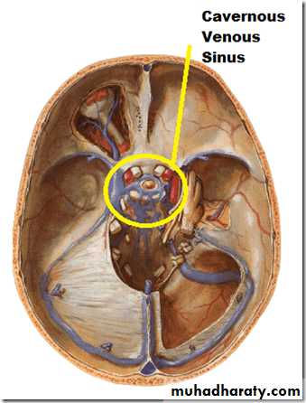 1- Cavernous sinus thrombosis is a serious condition that can follow infection of the face, paranasal sinuses (particularly the sphenoid sinus) or teeth most commonly in diabetic