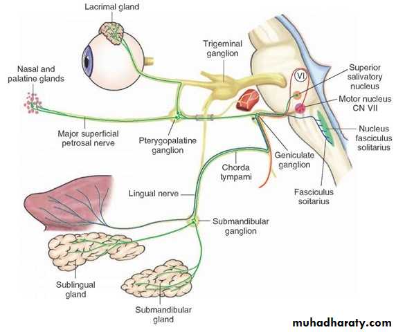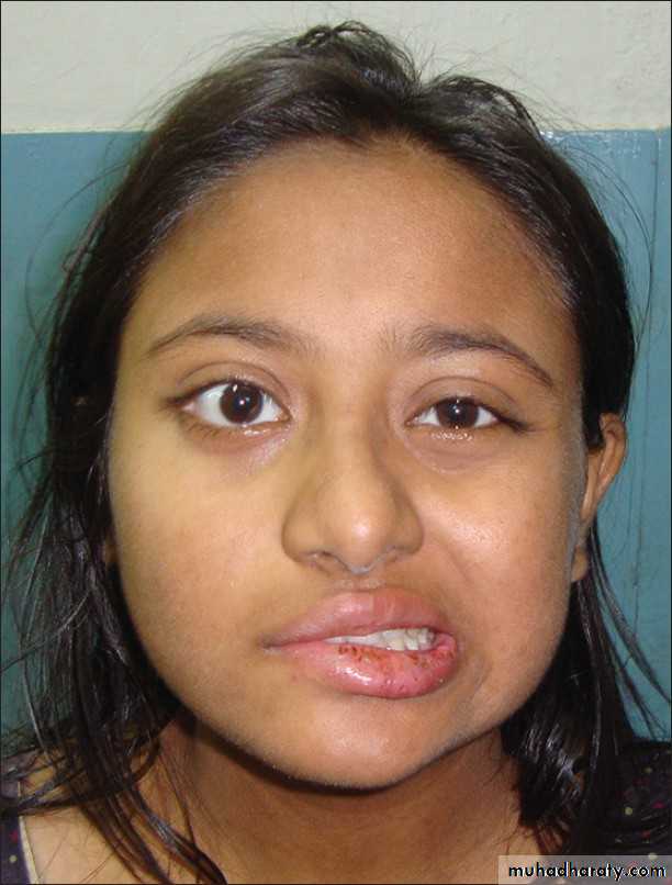 Ectropion formation may lead to overflow of tears on to the cheek. The angle of the mouth droops with reduction of the nasolabial fold, smoothing of skin wrinkles; the platysma muscle is also involved. The extent of maximal facial weakness is variable, but is severe in the majority, although occasionally patients present with very mild facial weaknessLoss of taste, often described as a muddy or metallic taste, and hyperacusis (because of paralysis of stapedius) indicate involvement of the chorda tympani and the branch to stapedius, Respectively