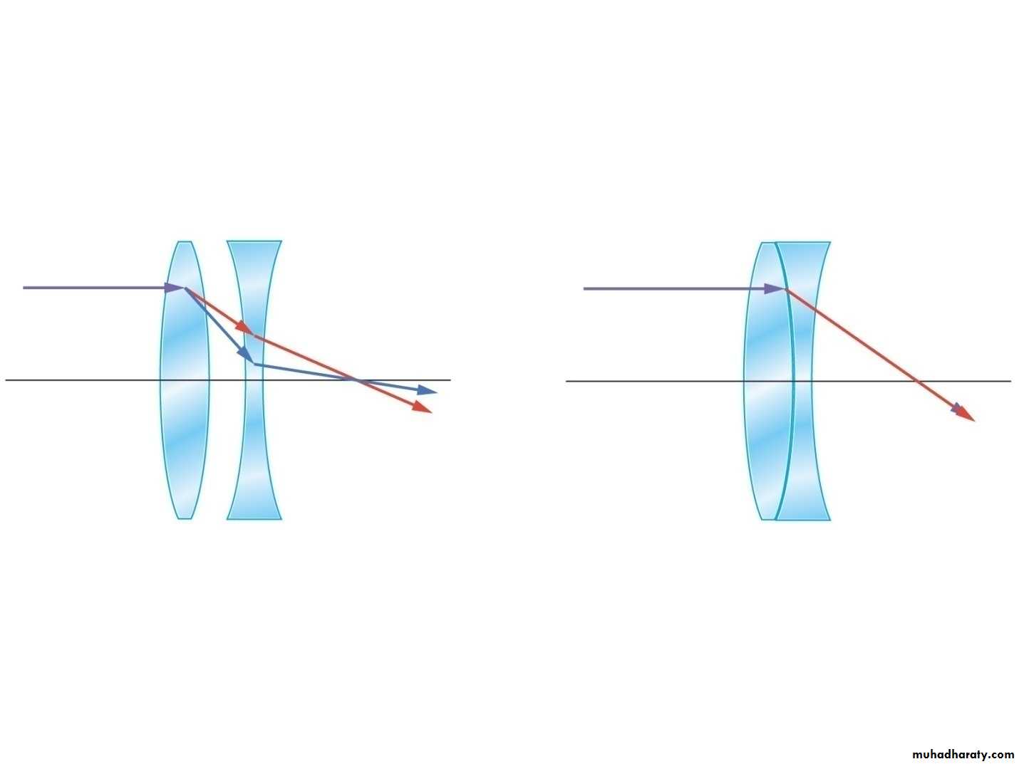 Example : Assume lens A with focal length FA = 0.33m is combined with a lens B with focal length FB =0.25m. What is the focal length of the combination? What is the dioptric strength of the combinations?