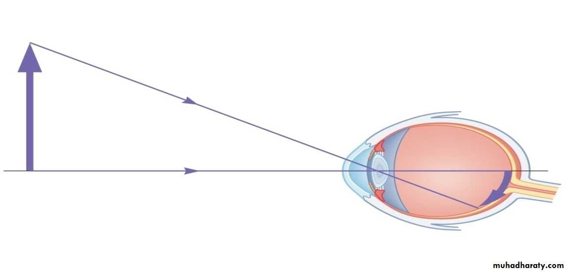 very small. Aconvenient equation for determining the size of image on the retina comes from the ratios of the lengths of the sides of similar triangles.