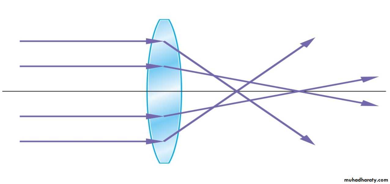 Lens aberrations can distort images. There are two types of lens aberration:1. Spherical aberration.
