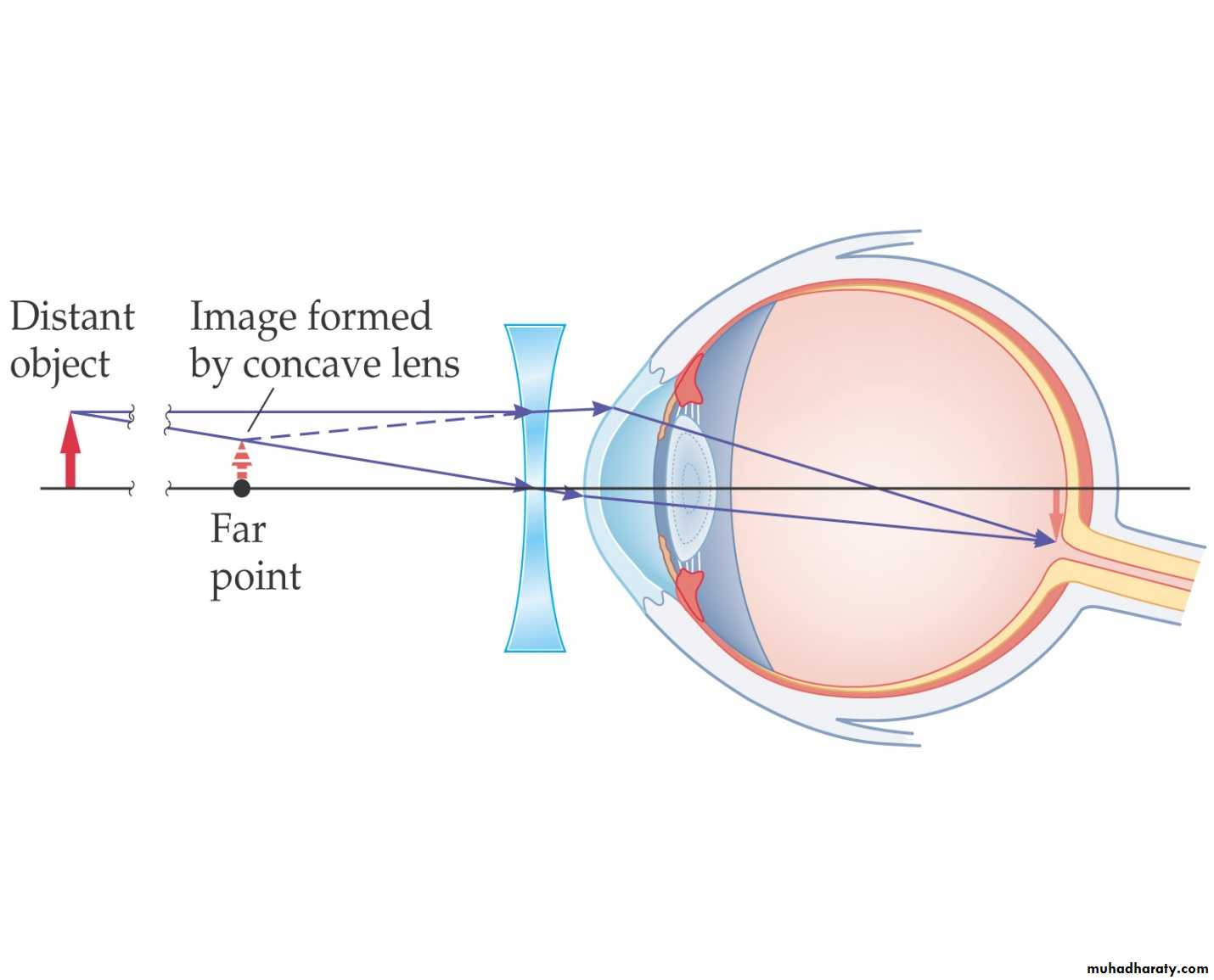 To correct this, a diverging lens is used. Its focal length is such that a distant object forms an image at the far point: