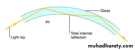 The light is reflected along the walls of the cable into the patient’s body. The light does this due to total internal reflection(figure10), which means that for this to happen the light ray must be at an angle of 82 degrees (which is the angle required for air to glass to be internally reflected).Figure(10)