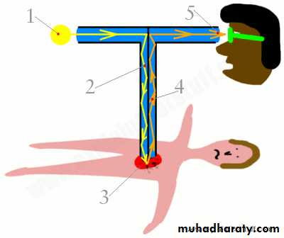5.The visible light used in the ophthalmoscope for looking into eyes ,and in the otoscope for looking into ears by using a concave mirror to direct light in the body and a hole in the middle of it for the physician to look through(figure 7).