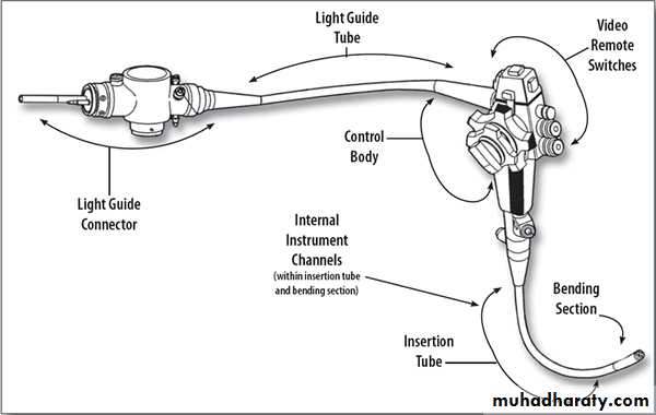 An endoscope consists of two or three optical cables. Each cable includes up to 50,000 separate optical fibers that are made from glass or plastic. One or two of these cables will carry light down into the patient’s body, this illuminates where the endoscope has been inserted.