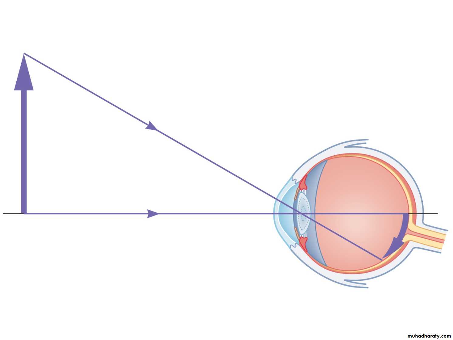 convenient equation for determining the size of image on the retina comes from the ratios of the lengths of the sides of similar triangles.I: is image size
