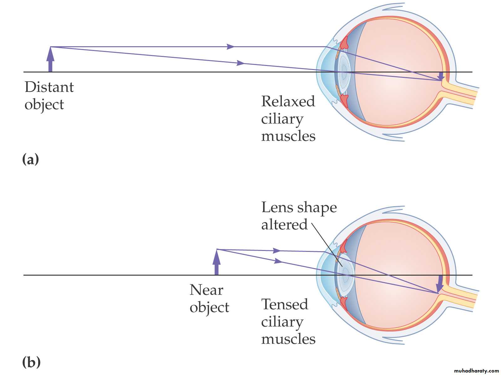The ciliary muscles adjust the shape of the lens to accommodate near and far vision.The Human Eye