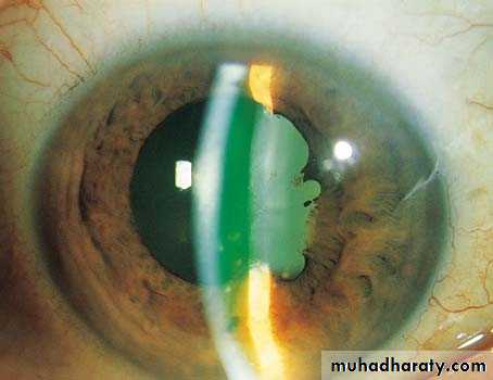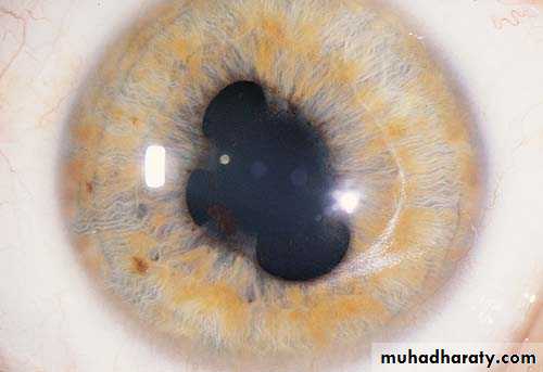 1. Coloboma: failure of mesodermal tissue of the eye to fuse tissue deficiency of iris. It may extend posteriorly (Ciliary Body, Choroid)…Extensive choroidal coloboma: will affect retinal growth