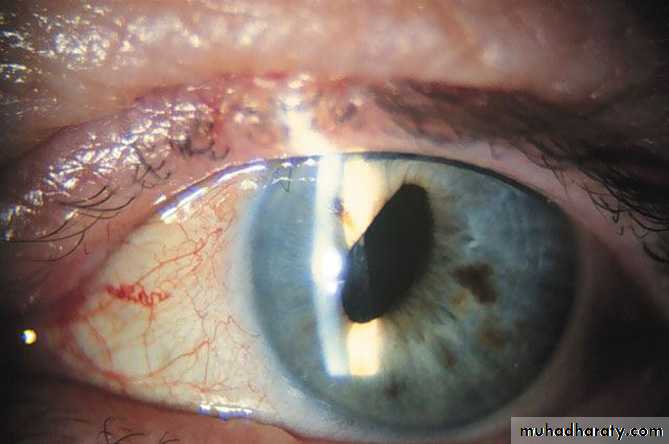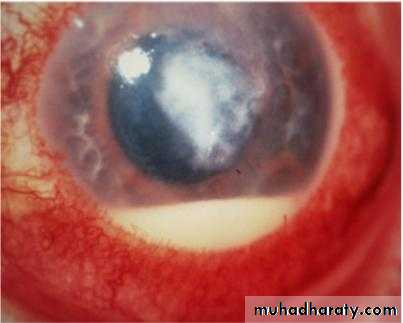 Visual acuity: is usually good at presentation, except in very sever cases with hypopyon.Ciliary ( circumcorneal) injection has a violaceous hue.