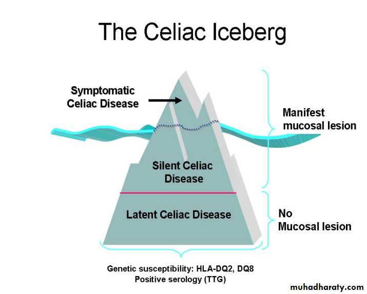 -‘silent’ coeliac disease ‘latent’ coeliac disease – genetically susceptible people who may later develop clinical coeliac disease.