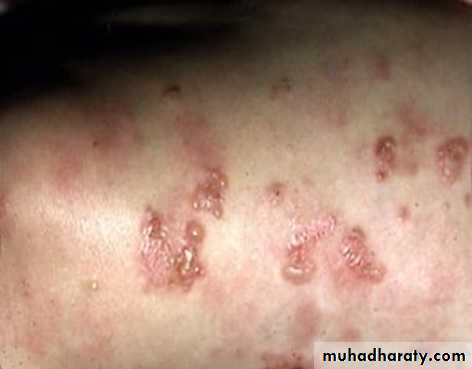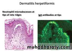 -intensely itchy blisters over the elbows, knees, back and buttocks.-Immunofluorescence shows granular or linear IgA deposition at the dermoepidermal junction.