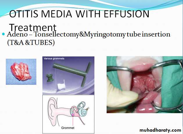 3- Adenoid hypertrophy: causes obstruction of ET orifice in the nasopharynx which leads to negative ME pressure and hence ME effusion.
