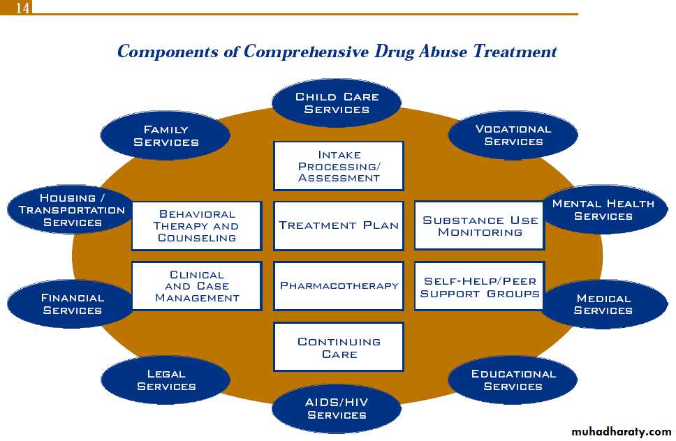 • Opiate substitution therapy(OST): in which heroin is substituted by much less harmful opiates like methadone and piprenorphine.