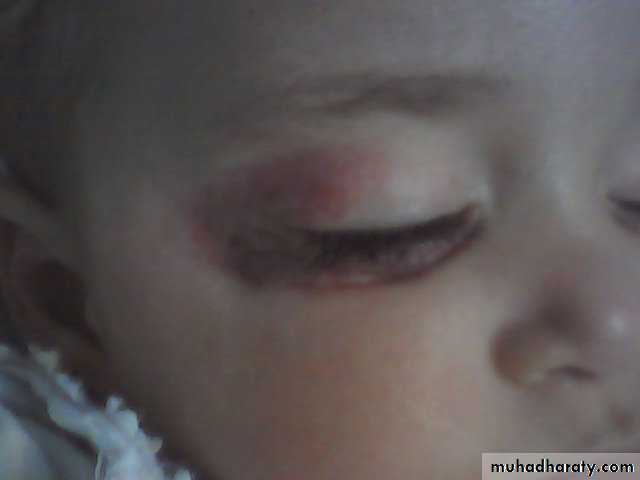 1- periorbital lesion visual obstruction ambylopi a & sometimes visual impairment.