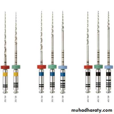 FlexMaster(A system for any case): sizes 20, 25 and 30 have three different tapers (0.02, 0.04 and 0.06), size 35 has two different tapers (0.02 and 0.06) and sizes 40 and 45 have only a 0.02 taper. These instruments using the crown-down technique to enlarge the root canals depending on the clinical situation