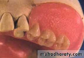 Pain in or around standing teethExcessive forces beyond physiological limits (metal or acrylic parts of the denture).