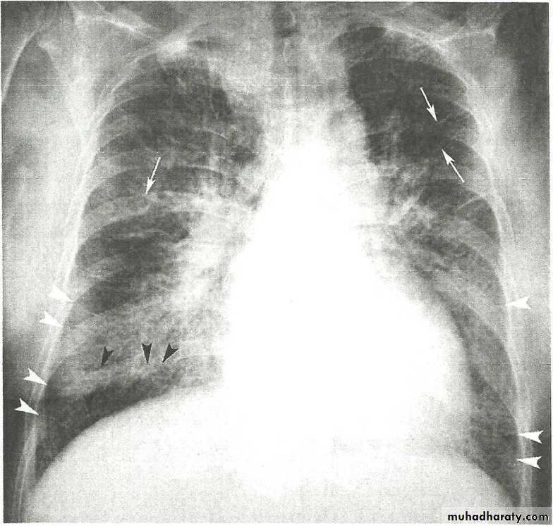 Kerley A lines (Arrows), Kerley B lines (arrowheads)