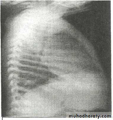 (in which the pt put on the suspected side & X-ray is taken (such as in pleural effusion).