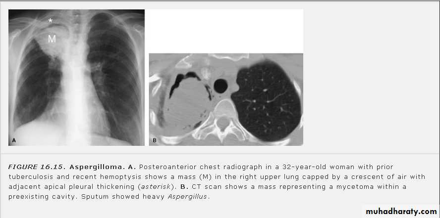 Early rupture is sen as a cresnt air sign .ddx aspergillus ball