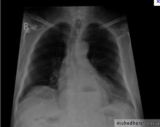 •Nodular (coin) lesion in the left upper lung with irregular edge (most probably cancinoma