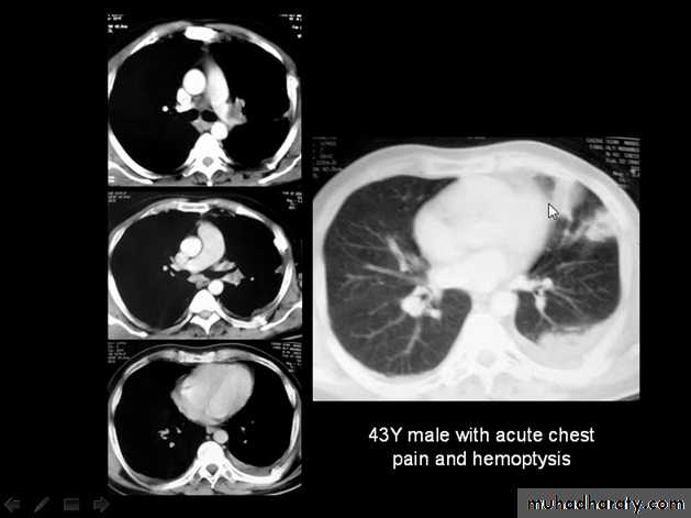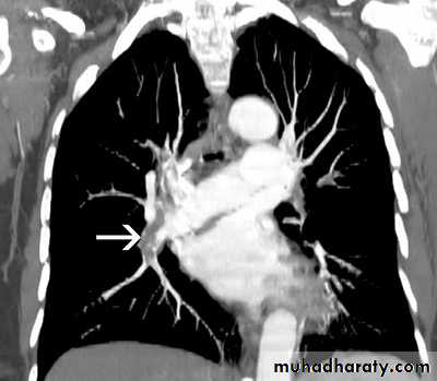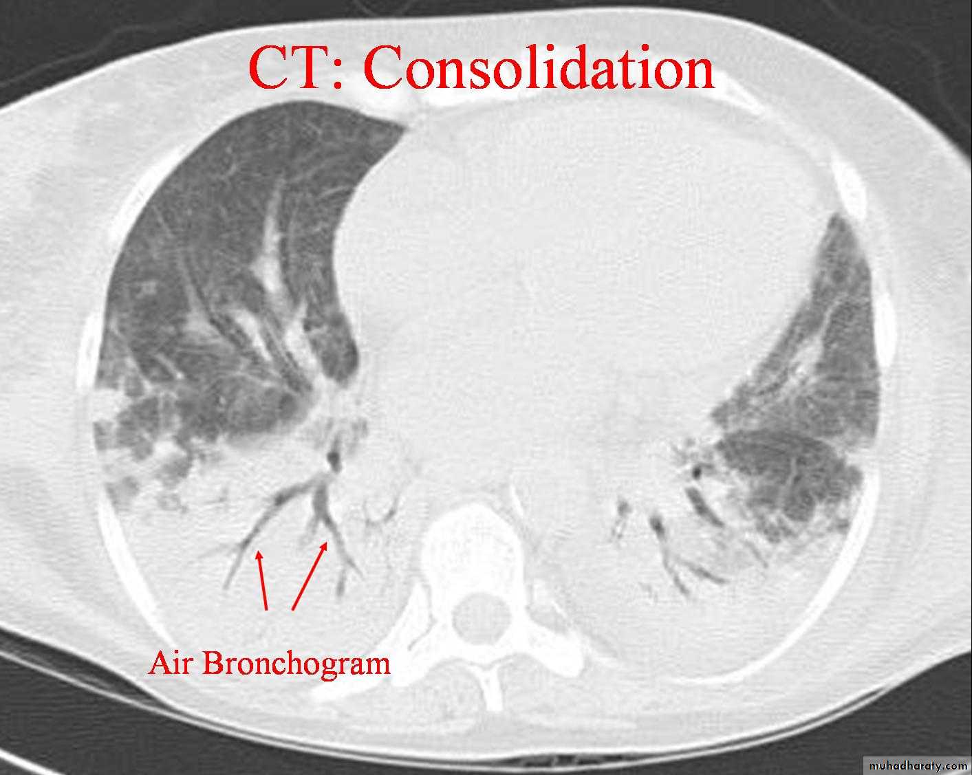 Signet ring sign : focally thickened bronchial wall adjacent to pulmonary artery branch .Tension pneumothorax.