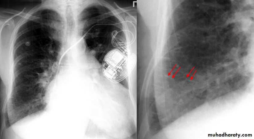 • effusionKerley A lines (Arrows), Kerley B lines (arrowheads)