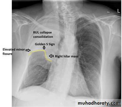 The opacification is sited anterior to the obliq- fissure-the position of the upper lobe.RLL collapse - PA.