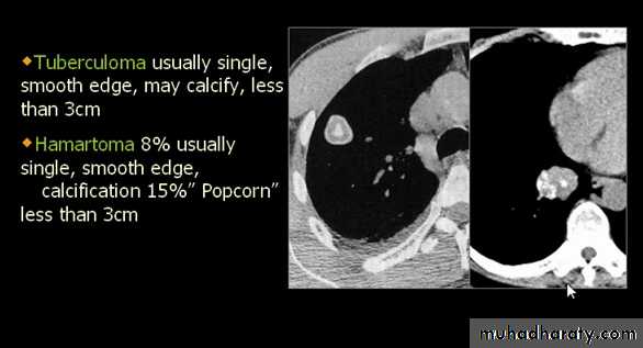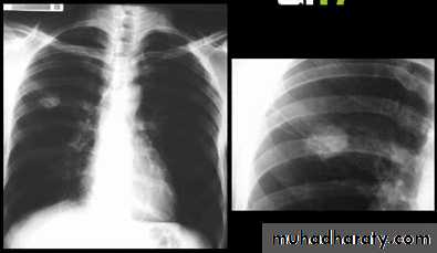 Dx:x chicken pox , Histoplasmosis (calcified granuloma).CAVITARY LESIONS