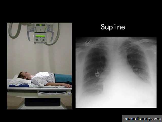 P-A (relation of x-ray beam to patient)Supine view (AP)
