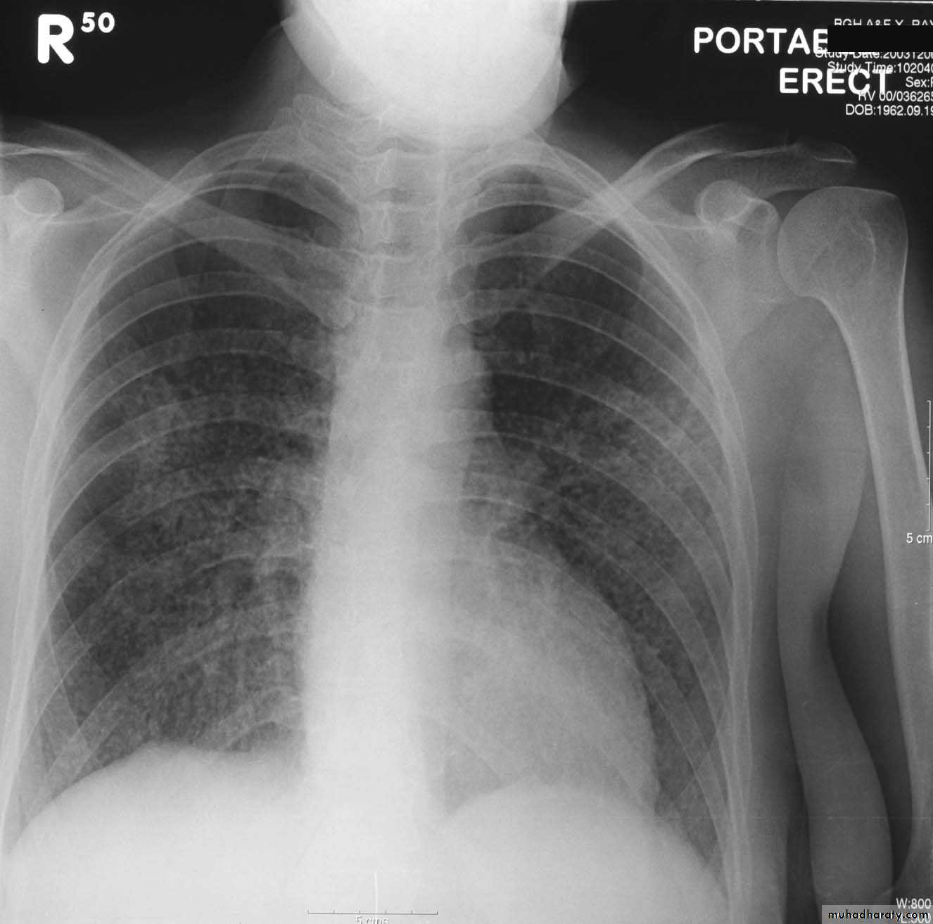 Miliary Tuberculosis. A cone-down view of a frontal radiograph demonstrates innumerable micronodular opacities characteristic of micronodular (miliary)