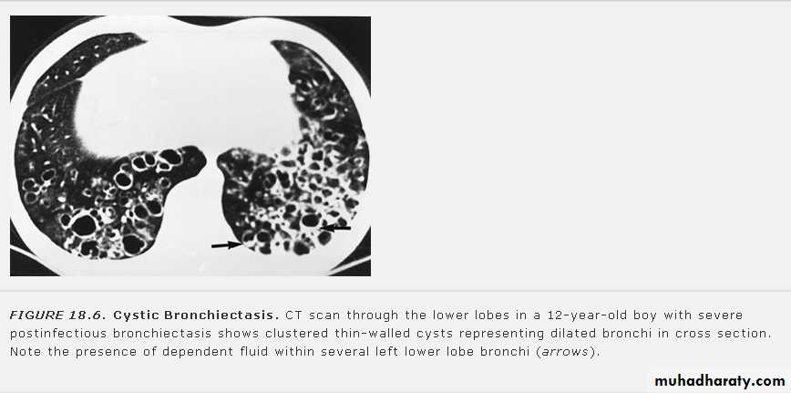 * Bronchial wall thickening (best seen end-on) as honey comb appearance ( cystic ) .
