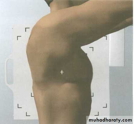 lateral decubitus .(in which the pt put on the suspected side & X-ray is taken (such as in pleural effusion).