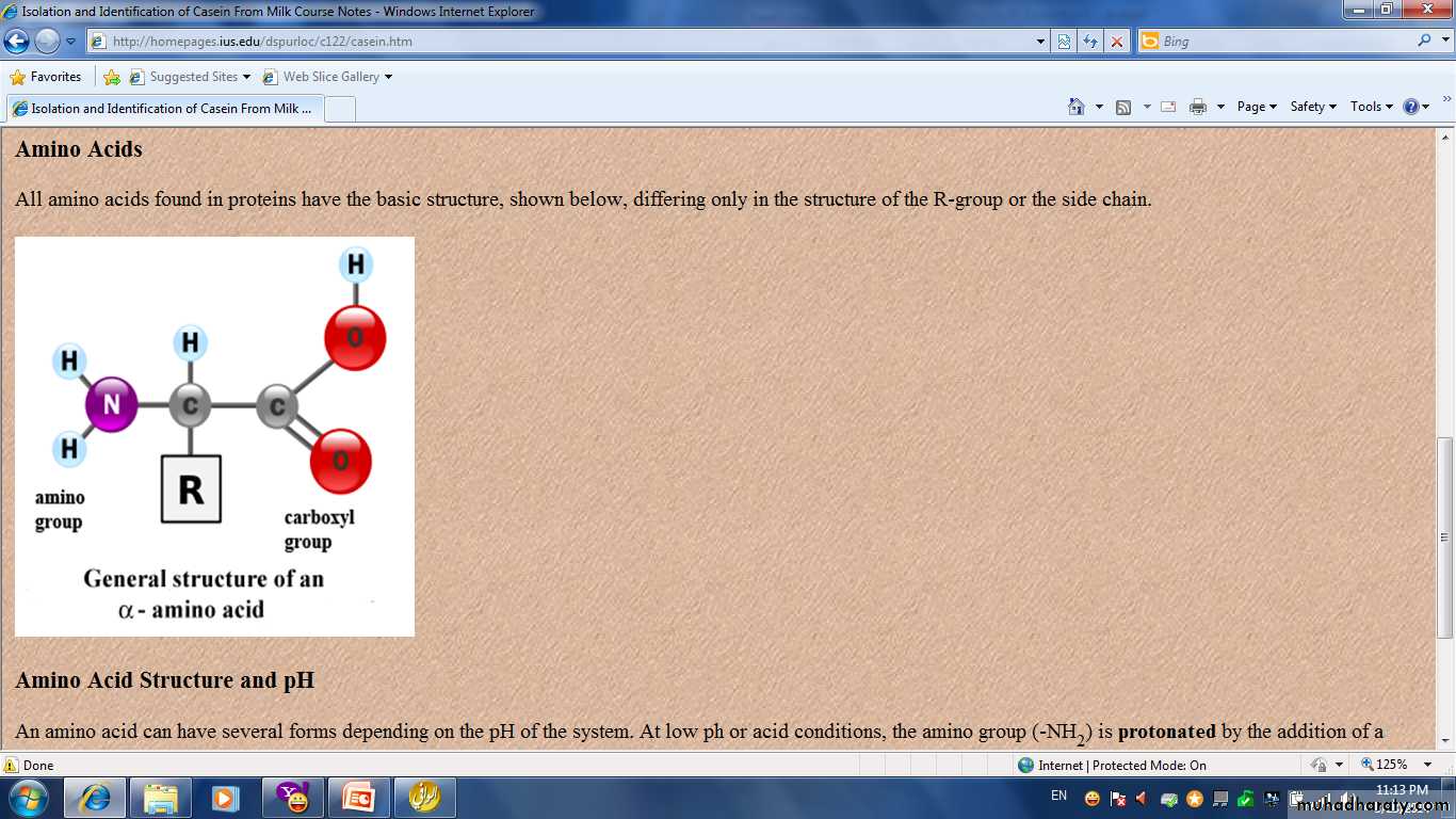 • Casein in the milk is the best example for this kind of protein. • To separate casein from milk by adding dilute acetic acid maximum precipitate will from near isoelectric point at pH 4.55 (acidic pH).