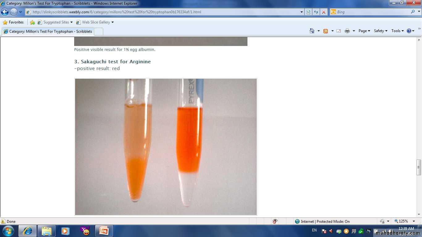 • Indicate the presence of Tyrosine when the phenolic group of tyrosine reacts with reagent a mixture of (Hg++, Hg2++, HNO3 and HNO2)1