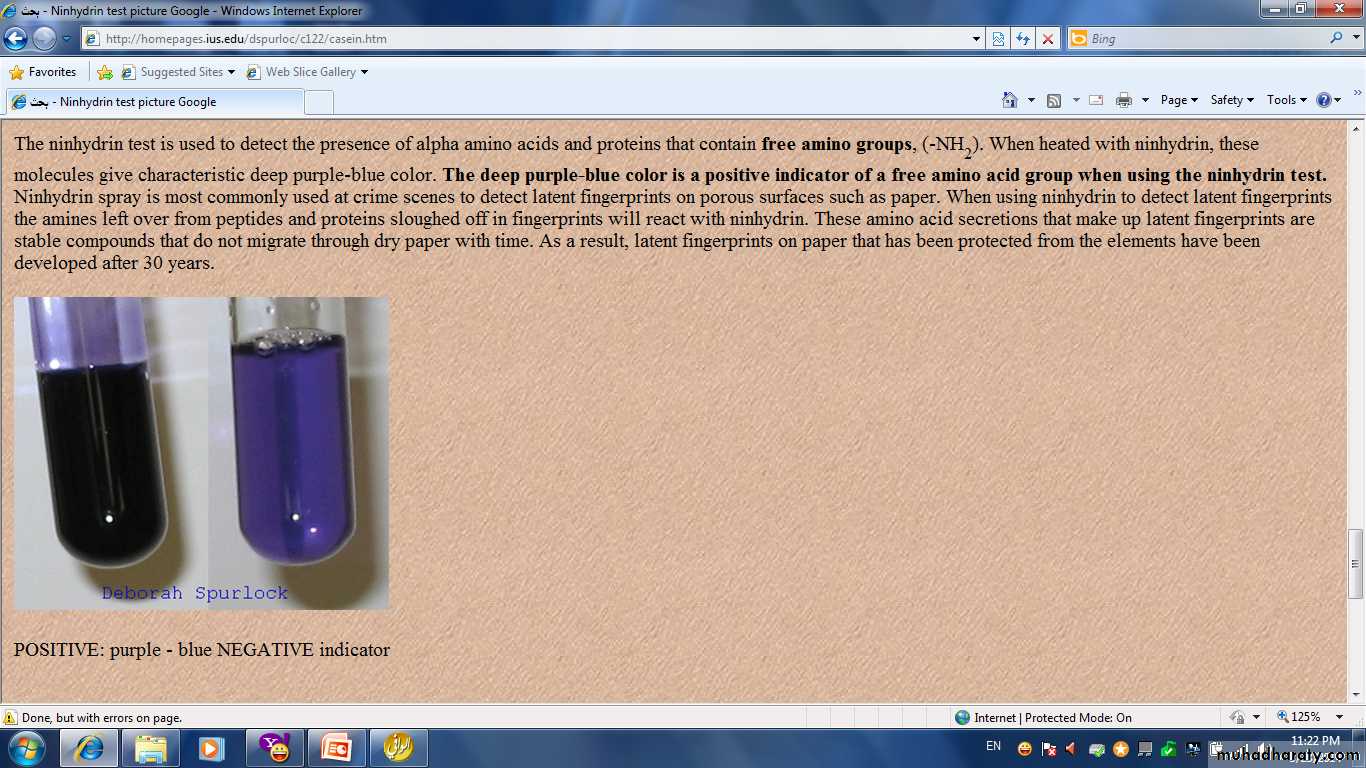 • It is the general test for protein and for all products of protein hydrolysis including amino acid.• The Ninhydrin test is used to detect the presence of alpha amino acids and proteins that contain free amino groups, (-NH2)