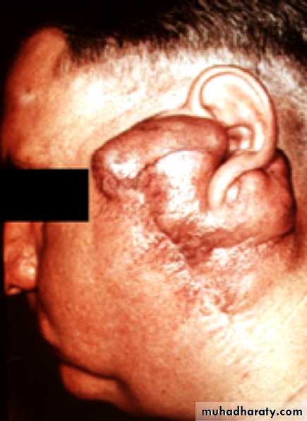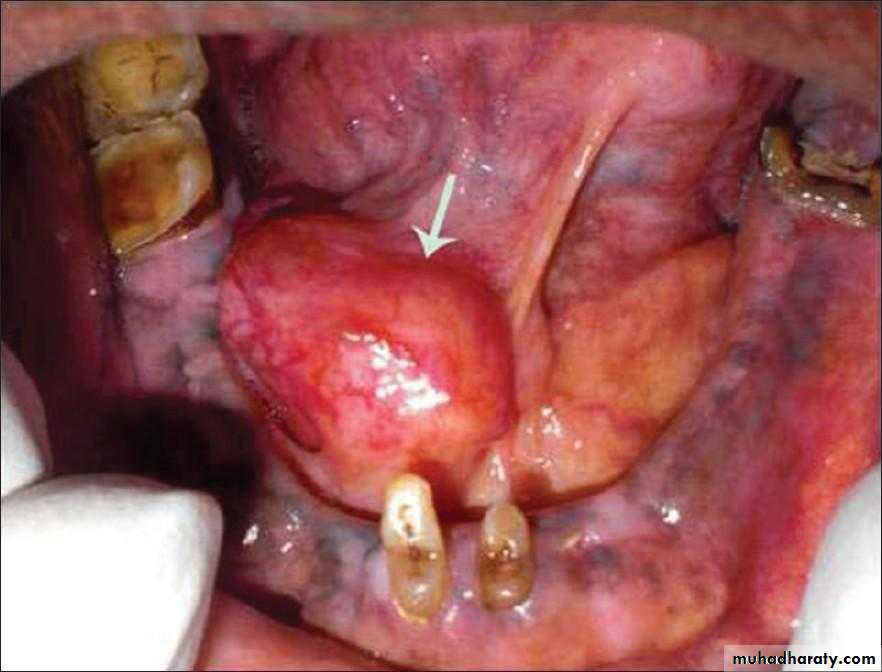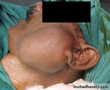 It appears as painless, firm, and mobile masses that rarely ulcerate the overlying skin or mucosa.In the parotid gland, these neoplasms are slow growing and usually occur in the posterior inferior aspect of the superficial lobe.