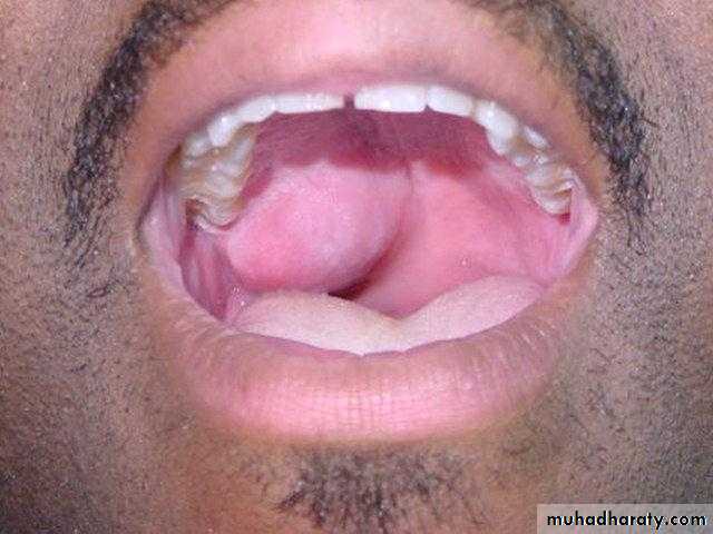 It presents as a firm unilobular mass in the gland.It’s painful, and parotid tumors may cause facial nerve paralysis in a small number of patients.